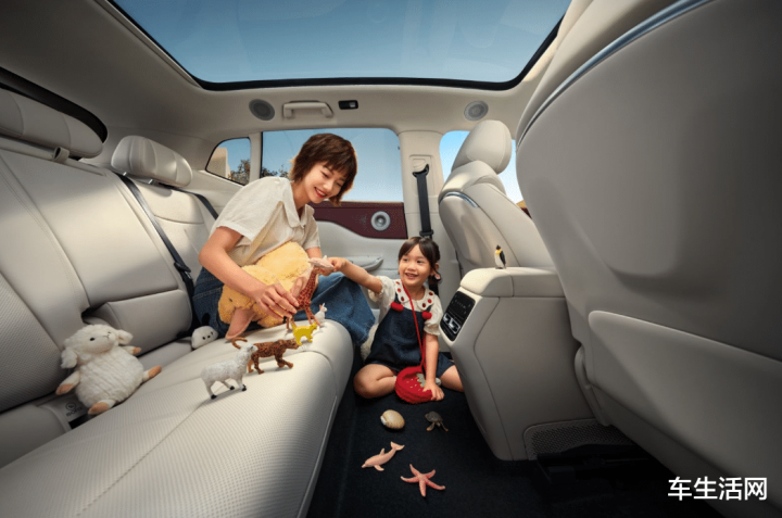 作为有一款大五座SUV,它第二排还支持11-127度无级调节,还可一键放倒与后备厢拉通扩展储物容积。新车内部拥有35处储物点位,包括72L隐私储物格,以及7L的冷暖冰箱。全景天幕还带有遮阳帘,值得好评。