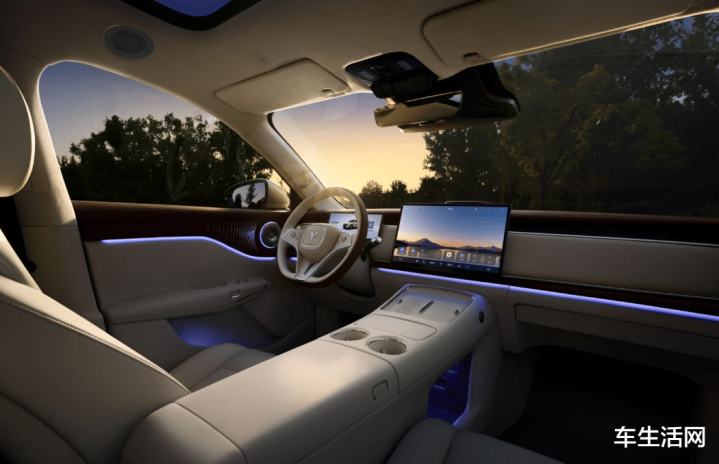 内饰部分,新款岚图知音也全面焕新,无论是用料还是整体的设计感,它都比老款提升了一个档次,豪华感和科技感在这个价位算是很到位了。搭载10.25英寸的全液晶仪表,换装全新的三辐式多功能方向盘,采用更简洁的滑轮按键,中控台中间配备了15.6英寸的悬浮式多媒体触控屏,搭配高通骁龙8295P芯片,内置鸿蒙座舱HarmonySpace5系统。